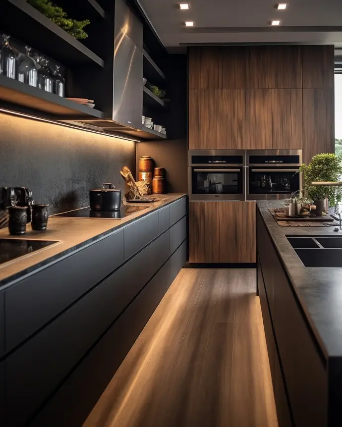 Seleccionamos cuidadosamente acabados y materiales que aportan calidez al instante, a la vez que incorporamos soluciones inteligentes que mantienen el espacio ordenado y funcional.